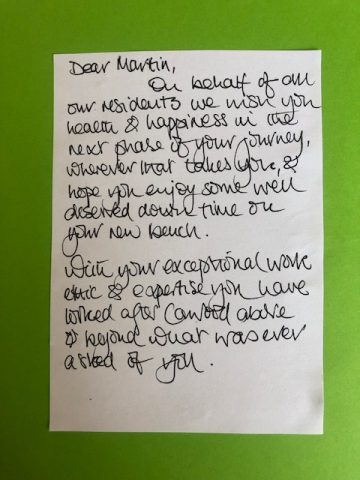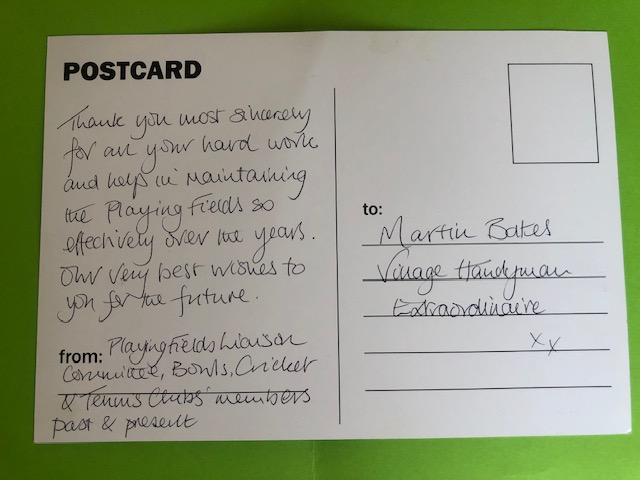 And so after 20 years as village Handyman, we say a big thank you and fond farewell to Martin . . .