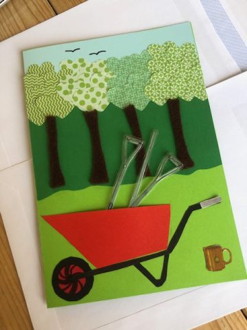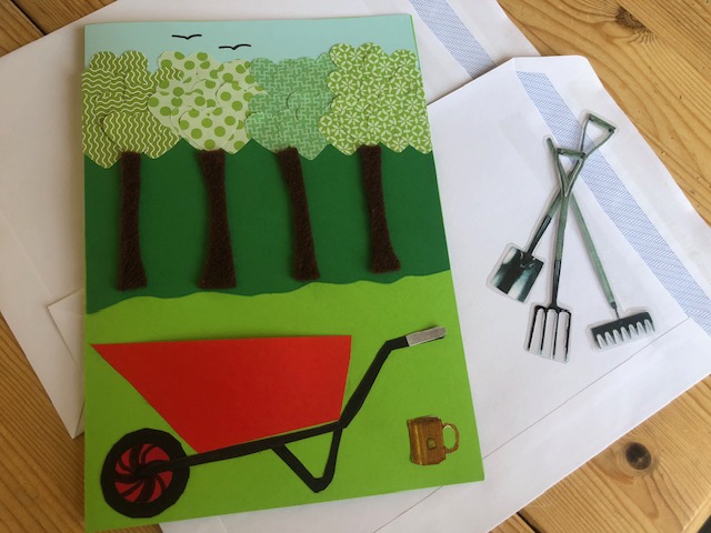 His card was especially commissioned from Rachel S who pulled out all the stops for him: this talented young artist created a collage which even had removable tools (big thanks Rachel).