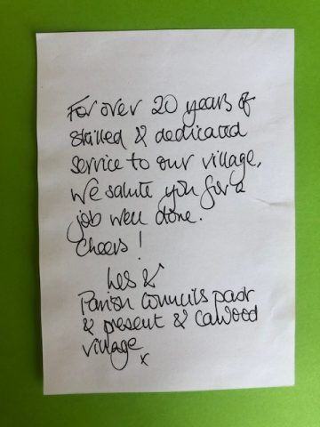 With sincere thanks Martin, and many good wishes from Cawood villagers old & new . . . missing you already!